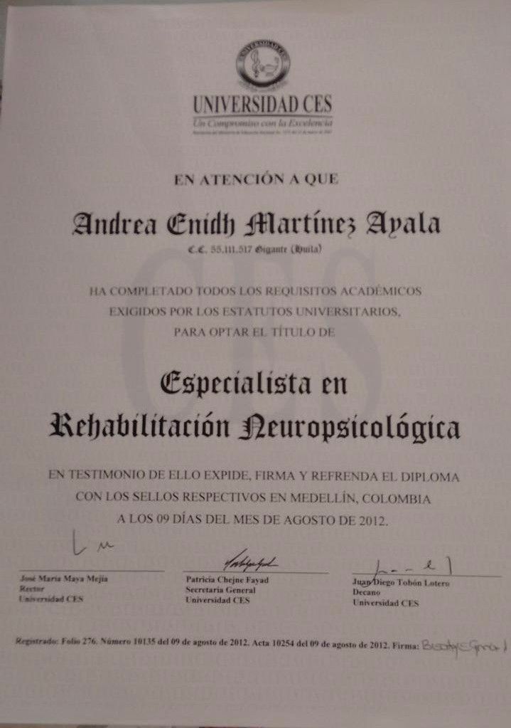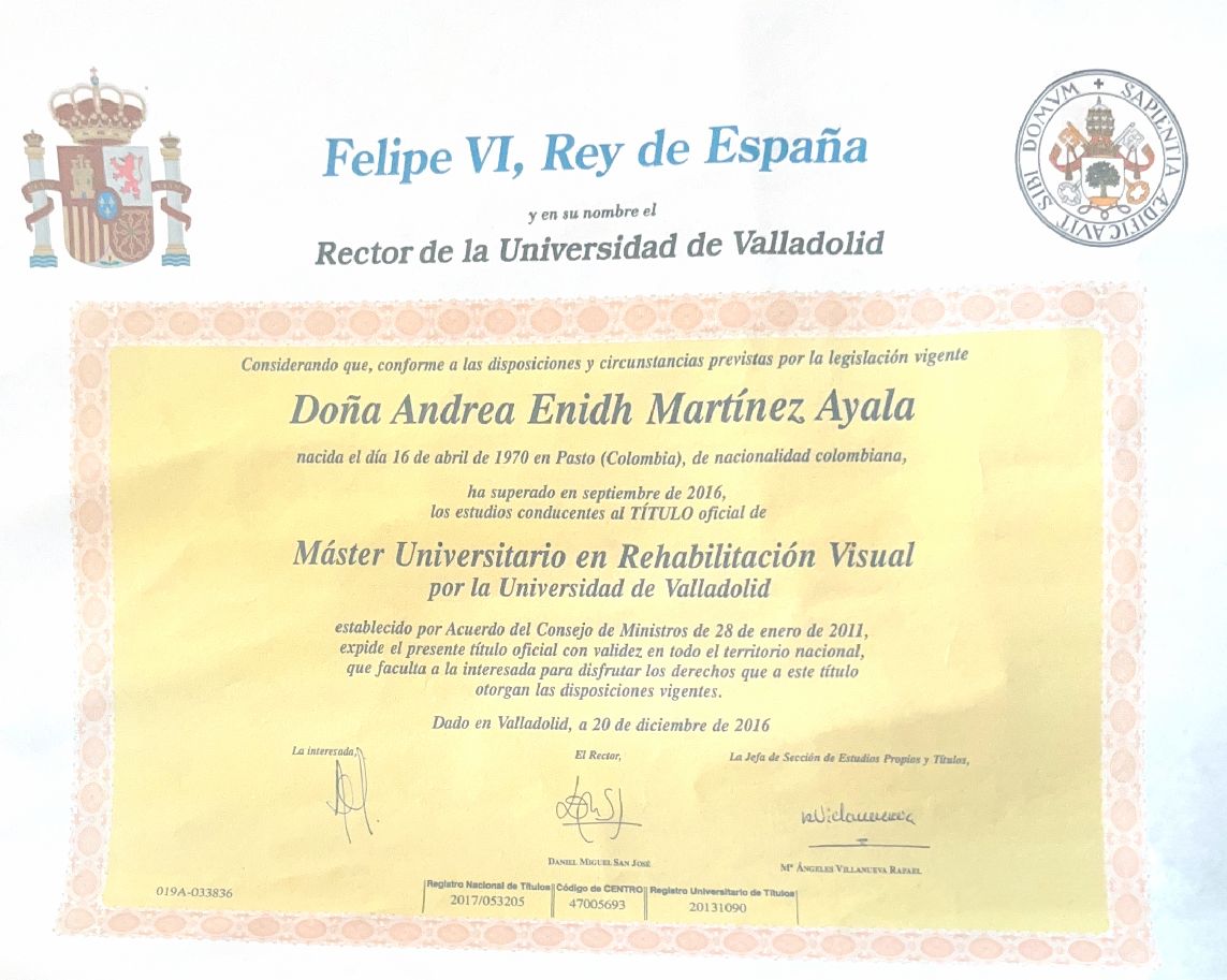 Soy médica especialista en Rehabilitación Neuropsicológica de la Universidad CES en Medellín, formada además en neurorrehabilitación como parte de esta especialización. Realicé una maestría en Rehabilitación Visual en la Universidad de Valladolid en España por medio de la Beca Iberoamérica + Asia Banco Santander Universidad de Valladolid, otorgada por la labor realizada en rehabilitación visual. Desde 2012 me dedico a realizar consultas de valoración con enfoque funcional a pacientes con déficit visual generado por patologías del sistema nervioso incluida la retina, y terapias de rehabilitación visual y/o cognitivas con enfoque funcional e integral.